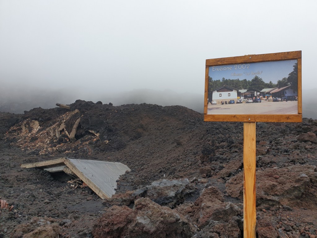 The explosive power of Mount Etna, showing the remains of a hotel following the eruption of 2002