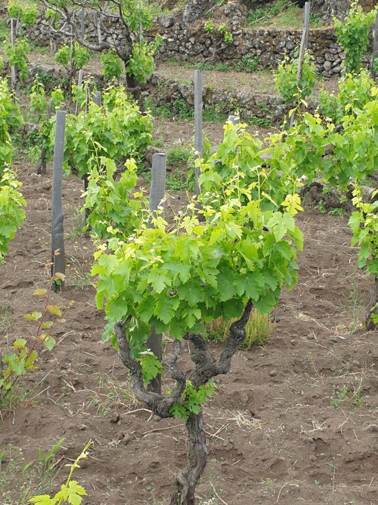 Both Palmento Costanzo and Pietradolce, like many others on Mount Etna, use a traditional method of viticulture called alberello, particularly for their oldest, ungrafted, pre-phylloxera vines. Rather than planting in rows on steep slopes, terraces were dug out of the lava rocks to make it less difficult to work the land. Basalt deposits from volcanic activity provided the rocks and stones to build dry stone walls that divide different properties and protect against erosion.